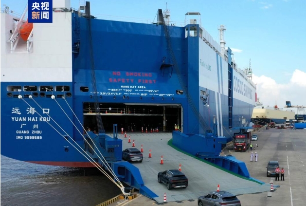 同日,中國最大光伏能源汽車運輸船“遠海口”在廣州南沙首航。該船搭載約4000台來自比亞迪、奇瑞、吉利等中國品牌的車輛,其中九成以上為新能源汽車,駛向希臘、土耳其、突尼斯等共建“一帶一路”國家。據介紹,該船最大裝載能力為7000標準車位。