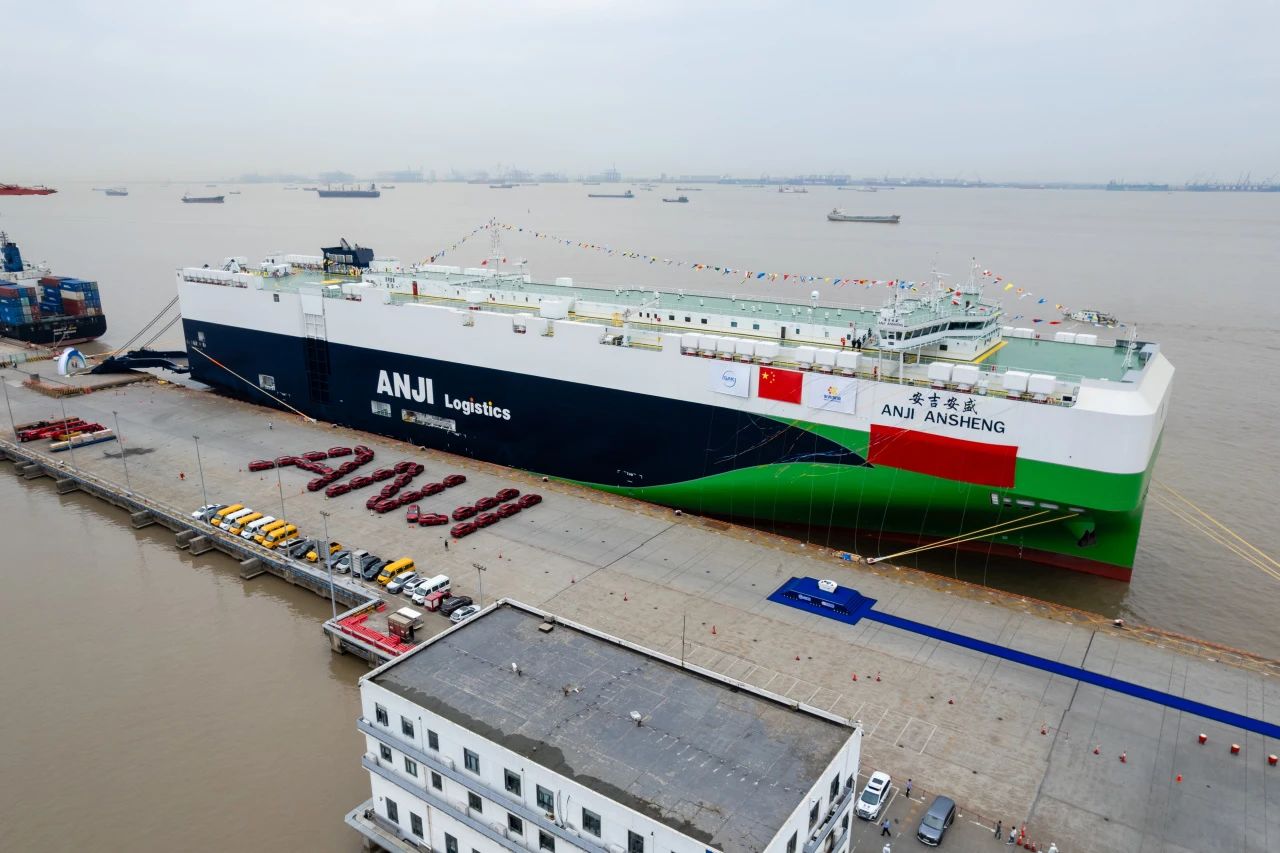 【文/觀察者網 潘昱辰 編輯/高莘】5月15日,上汽集團旗下安吉物流所有的全球最大汽車滾裝船——9500車位甲醇預留遠洋汽車滾裝船被命名為“安吉安盛”號,並於上海外高橋港區海通碼頭開啓首航。