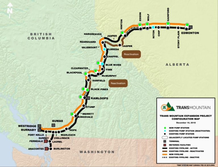 加拿大跨山輸油管道(TMX)示意圖 TMX管道官網