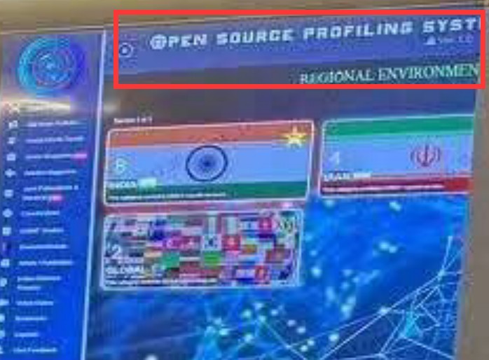 而“獵手太空操作”系統中展示了3台可能是干擾機指向的帶狀圖像,看起來其中1台位於伊斯蘭堡附近,另外2台位於白沙瓦南側。右側還有一個“開源分析系統-區域環境”(Open Source Profiling System-Regional Environment),下面是印度和伊朗的國旗,説明這套系統主要針對巴基斯坦的這兩個陸上鄰國。