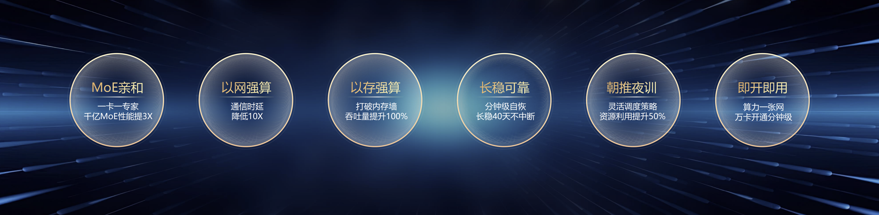 他指出,隨着大模型訓練和推理對算力需求的爆炸式增長,傳統計算架構已難以支撐AI技術的代際躍遷,超節點架構的誕生不僅是技術的突破,更是以工程化創新開闢AI產業的新路徑。華為雲CloudMatrix 384超節點具備MoE親和、以網強算、以存強算、長穩可靠、朝推夜訓、即開即用六大領先技術優勢,以系統架構創新重新定義新一代AI基礎設施。
