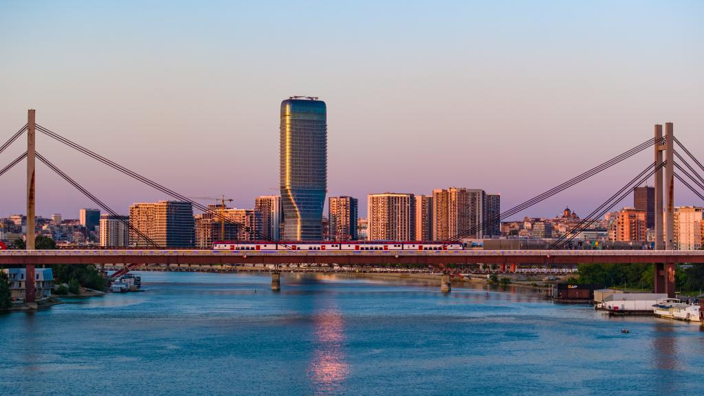 一輛列車運行在匈塞鐵路塞爾維亞境內貝諾段橫跨薩瓦河的大橋上。人民日報