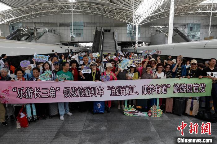 中新網上海5月19日消息,5月19日9時37分,G7236次高鐵列車搭載近百名上海銀髮遊客,從上海火車站緩緩駛出,前往歷史文化名城鎮江,開啓為期三天的宜遊鎮江康養之旅。這標誌着由中國鐵路上海局集團有限公司所屬上鐵文旅傳媒公司打造的“樂遊長三角”銀髮旅遊列車暨“宜遊鎮江、康養有道”旅遊團成功首發,為第十五個中國旅遊日的到來增添了一抹亮色。