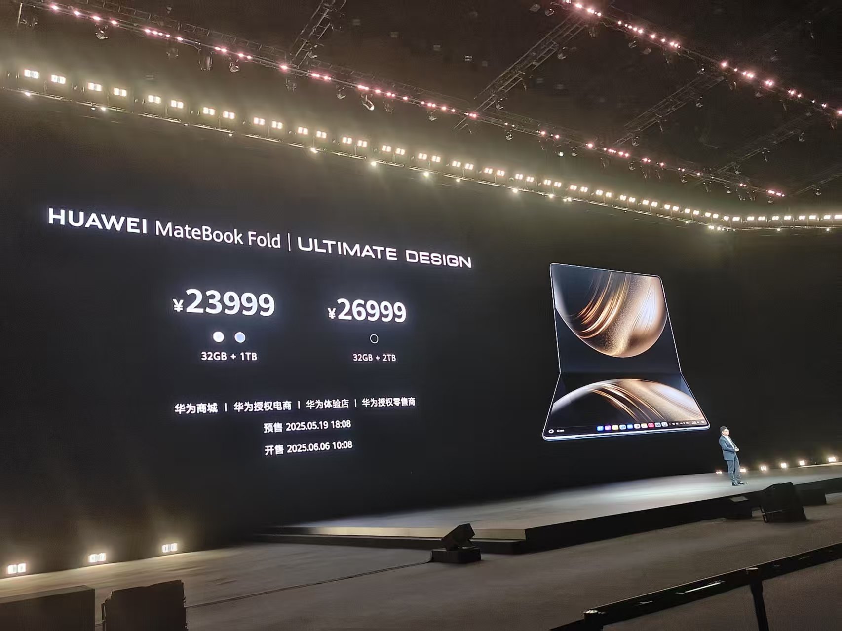 華為MateBook Fold非凡大師將於今晚18:08開啓預售,6月6日10:08正式開售,32GB + 1TB版本售價23999元,32GB + 2TB版本售價26999元。