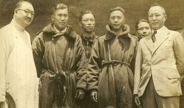孔祥熙、何應欽與部分機組成員,左起孔祥熙、佟彥博、雷天春、徐煥升、劉榮光、何應欽
