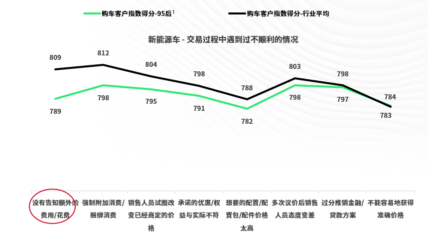 在服務接觸體驗方面,95後則對於效率和透明度有着較高的要求。研究顯示,若服務節奏拖沓,95後的滿意度會明顯降低。同時,95後對“透明度”要求也更高,一旦在購車過程中遇到“沒有告知額外的費用”的情況,其對於品牌的好感度會明顯低於行業平均值。