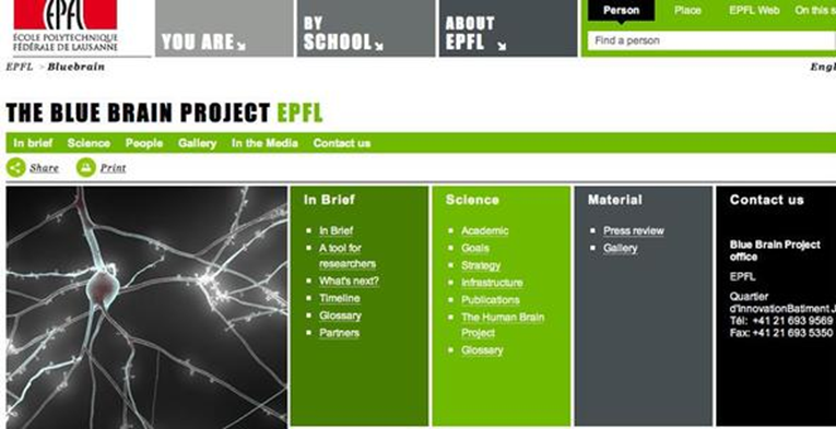 歐盟在2005年支持了一個由瑞士的洛桑聯邦理工學院腦研究中心與IBM聯合發起的雄心勃勃的“藍腦”計劃。他們計劃利用海量的計算能力,基於計算機模擬技術,用對應於人腦的基礎性物質層面活動的算法去模擬人腦內部的物理生化過程。該項目計劃在2023年左右實現在分子水平上對人腦的完整模擬。