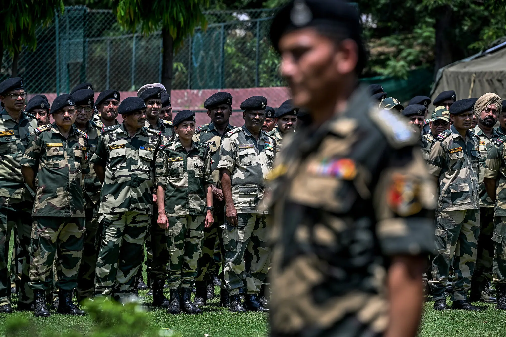 印度邊境安全部隊士兵參加一名在印巴衝突中喪生的警員的葬禮。 《紐約時報》