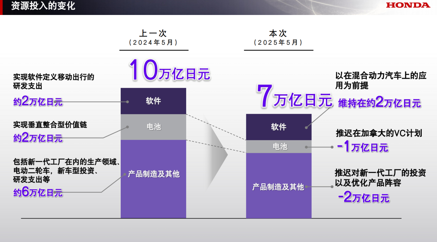 去年,本田曾宣佈將在電動化領域投入10萬億日元(約合人民幣5019億元)。然而,由於本田將推遲2年在加拿大建立全方位價值鏈的計劃,並調整建立新一代純電動車專用工廠的時間。因此,本田將截至2030年度的投資總額降至7萬億日元(約合人民幣3512億元)。