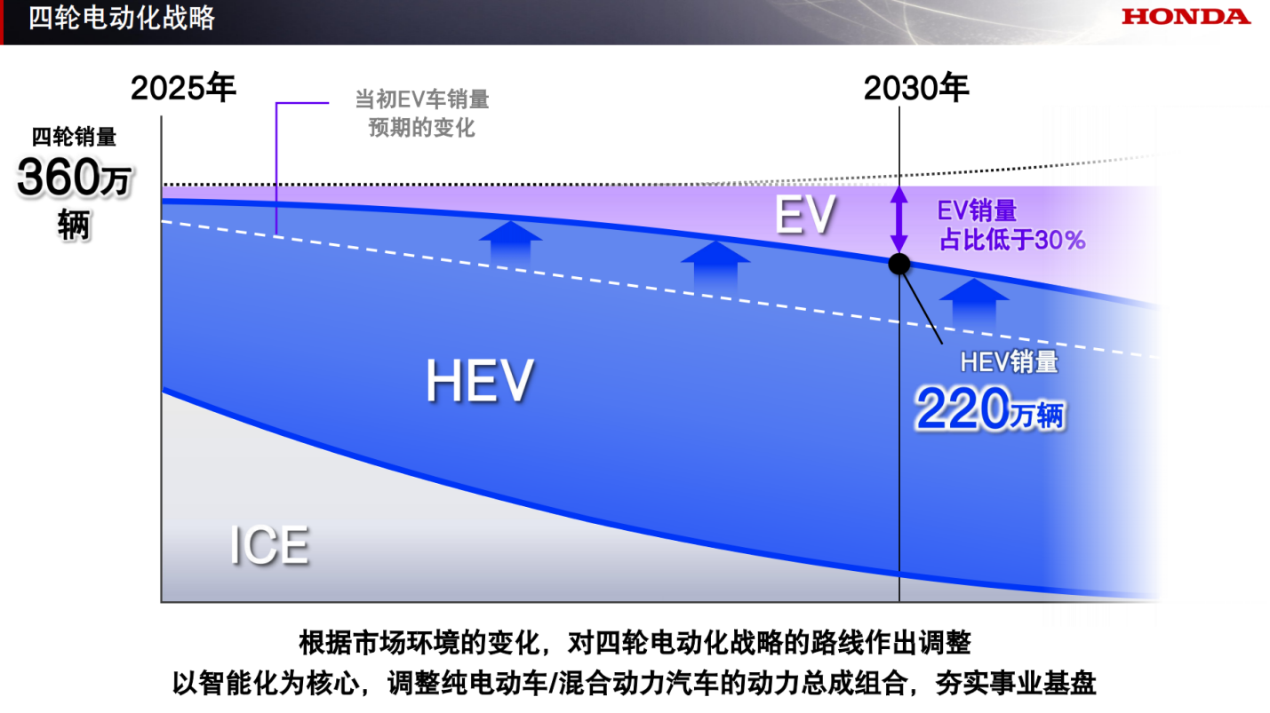 【文/觀察者網 潘昱辰 編輯/高莘】5月20日,本田汽車發佈2025年全球事業規劃。本田表示,鑑於當前全球市場增速放緩,預計2030年純電動車的銷量佔比將會低於此前設定的30%的預期目標。為此,本田將調整純電動車戰略路線圖,並將以2027年後推出的新一代混動車型為核心強化產品陣容。