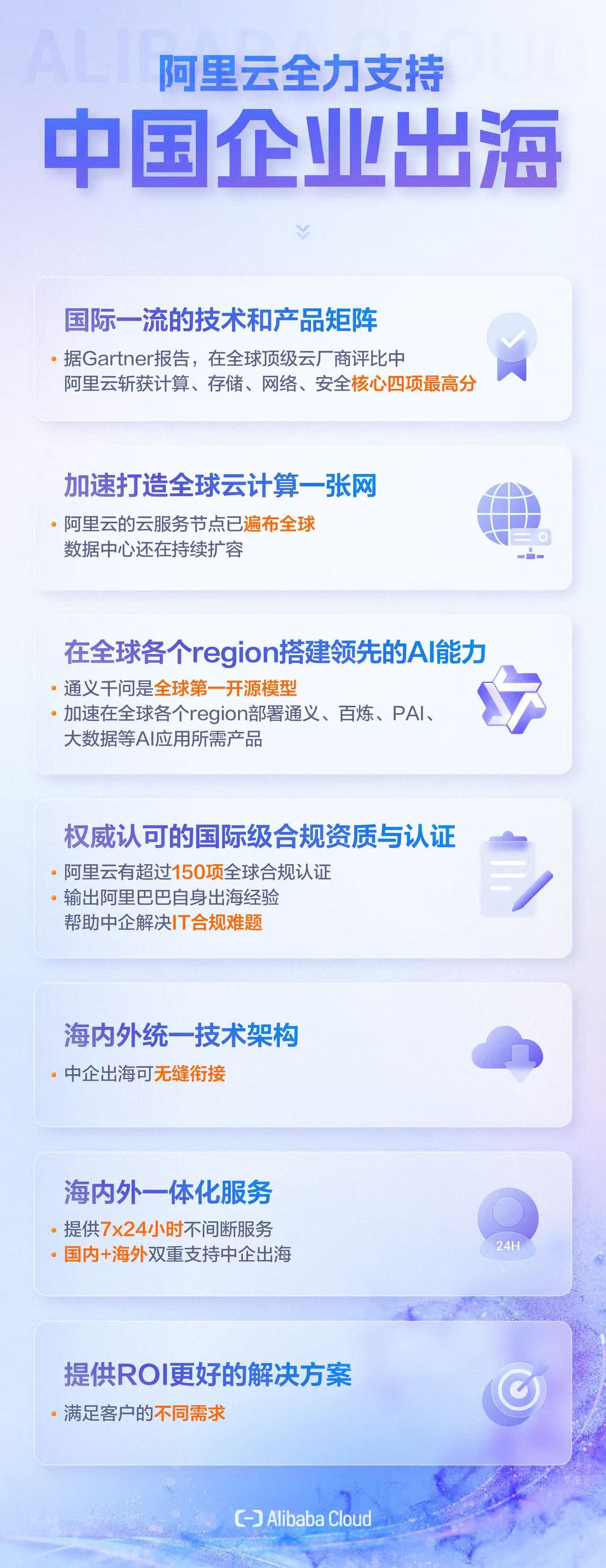 阿里雲正在加速AI產品國際化,在增加海外AI基礎設施佈局的同時,加速部署通義、百鍊、PAI、大數據等AI應用所需產品。在基礎設施層,阿里雲靈駿將在海外多個區域開服;在平台層,PAI的開發、訓練、推理服務已覆蓋全球17個地域;在模型服務層,阿里雲百鍊國際站Model Studio新增多項能力,為出海中企提供更高效實惠的模型API服務。第三,打造海內外一體的最優服務體驗。阿里雲將增強對出海諮詢、技術和服務團隊的投入,為中企提供國內+海外7*24小時一體化的服務體驗。