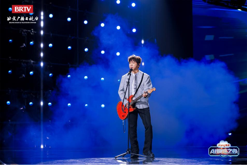 當熟悉的旋律響起,歌手胡海泉懷抱吉他彈唱登場,每一個音符都承載着青春的回憶,“隨風奔跑自由是方向,追逐雷和閃電的力量”,激昂嗓音傳遞力量,動感節奏嗨翻全場,帶領觀眾全力《奔跑》向健康的彼岸。