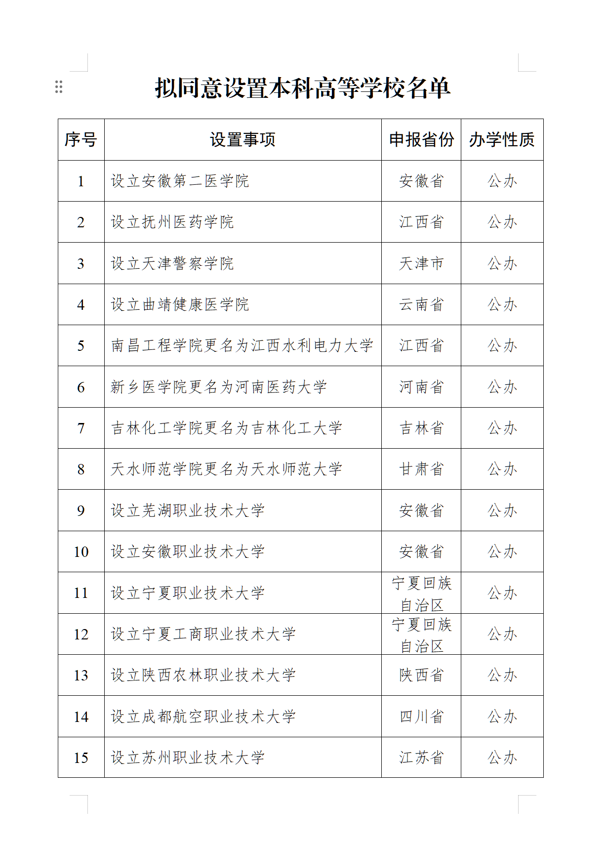 據教育部官網22日消息,根據《中華人民共和國高等教育法》《普通高等學校設置暫行條例》《普通本科學校設置暫行規定》《本科層次職業學校設置標準(試行)》等有關規定以及第八屆全國高等學校設置評議委員會考察評議結果,經教育部黨組會議審議,教育部擬同意設置安徽第二醫學院等32所學校,現予公示