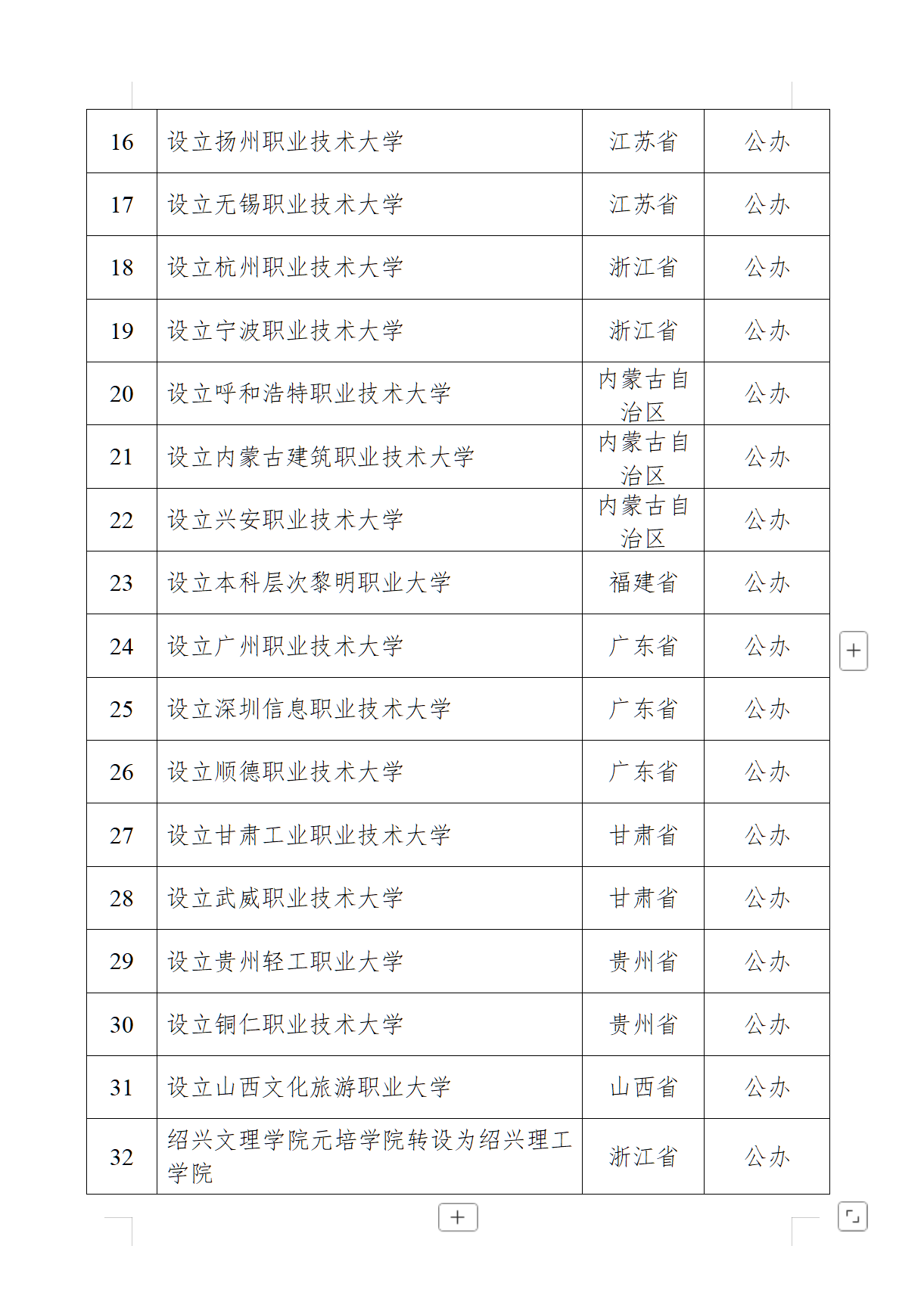 教育部擬同意設置32所新大學