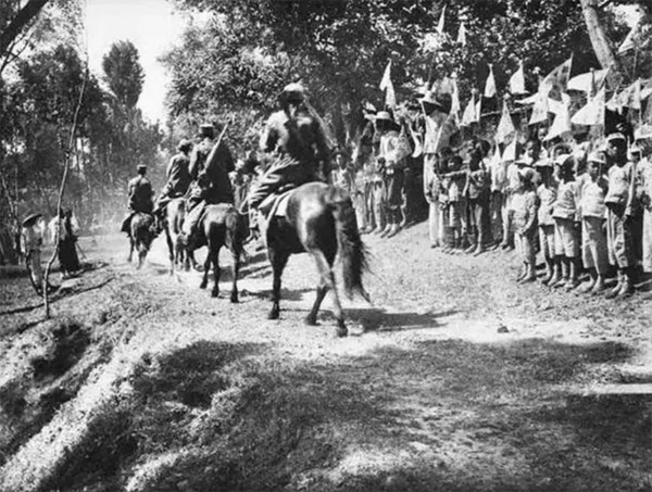 1939年5月20日,八路軍晉察冀軍區第一軍分區參加大龍華戰鬥凱旋歸來的部隊受到羣眾熱烈歡迎