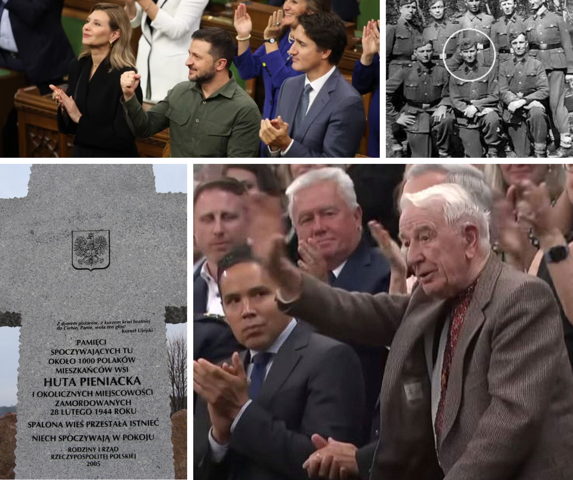 2023年9月,烏克蘭總統澤連斯基訪問加拿大議會期間,因一名受邀與會的“烏克蘭二戰老兵”洪卡獲得全場起立鼓掌而引發爭議。 圖自:社交媒體