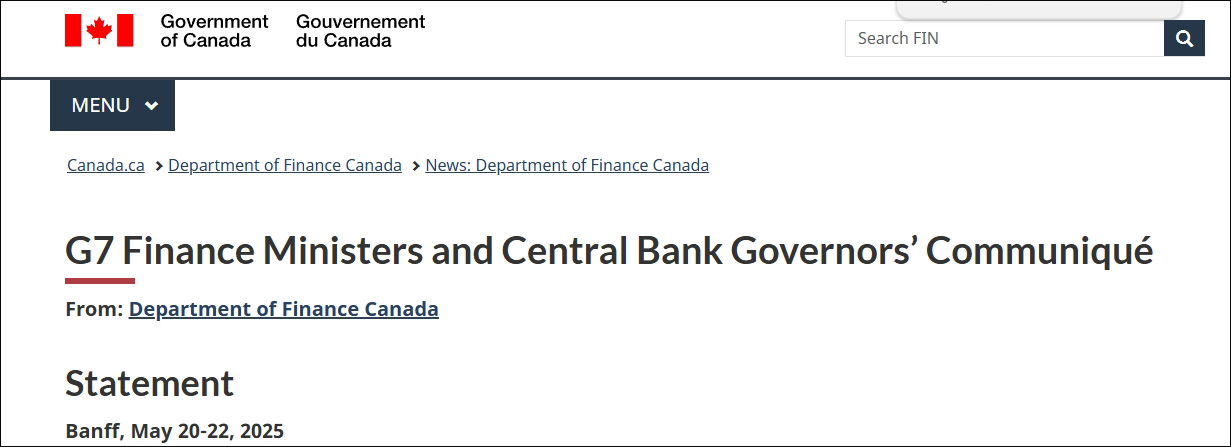 加拿大政府網站發佈的G7財長和央行行長會議聯合聲明
