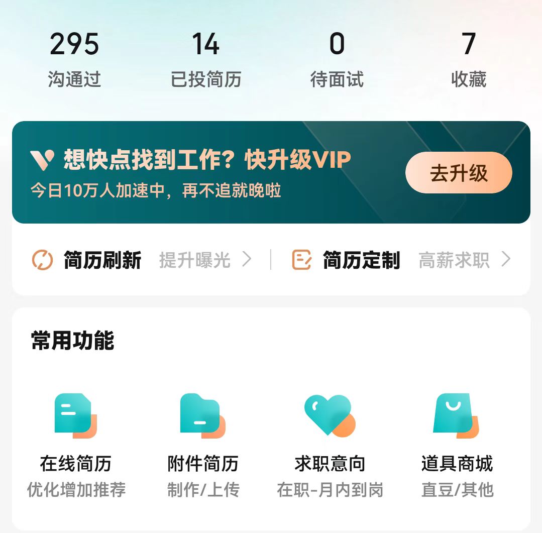 李林苦笑着説:“現在會員到期了,又會提醒我‘想快點找到工作?快升級VIP’。正在猶豫要不要繼續充,快兩個月了還沒有找到新工作。”
