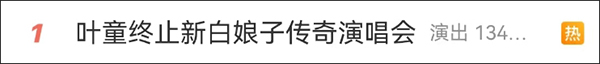 “葉童終止新白娘子傳奇演唱會”話題於5月25日衝上熱搜第一。