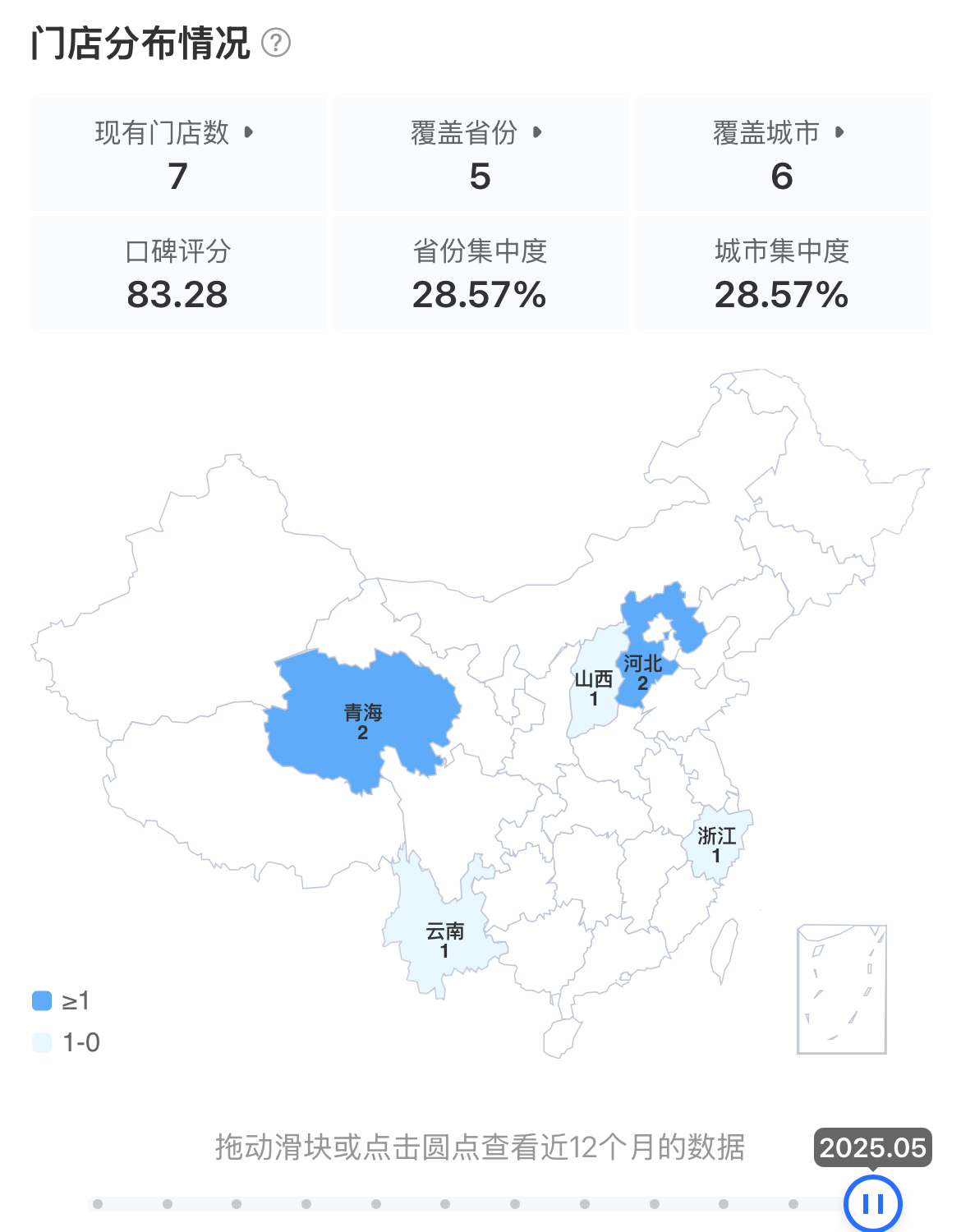 根據窄門餐眼數據,截至5月15日,仍有7家燒本燒烤肉門店在營,覆蓋了5個省份、6座城市,大多聚集在低線城市。
