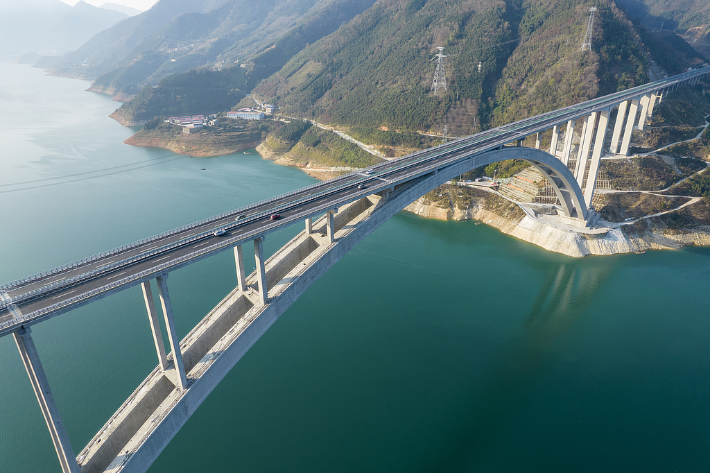 去年2月通車、位於廣西天峨縣的天峨龍灘特大橋如今是世界最大跨徑拱橋。其位於廣西河池市天峨縣龍灘電站大壩上游6公里處,橫跨紅水河,全長2488.55米,主橋計算跨徑達到600米。