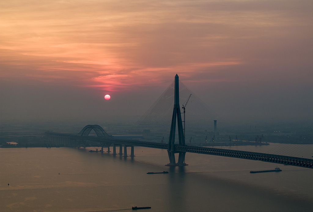 滬蘇通長江公鐵大橋2020年正式開通,主跨1092米,全長11.07公里,主塔高330米,目前是世界第二跨度的斜拉橋。