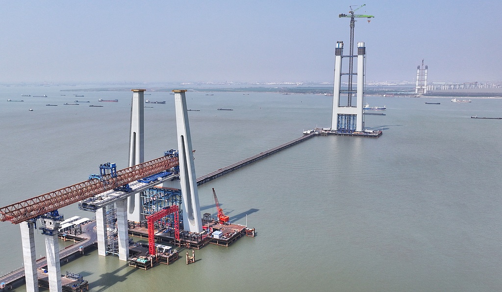 2025年3月26日,江蘇張家港,張靖皋長江大橋南航道橋施工現場 視覺中國