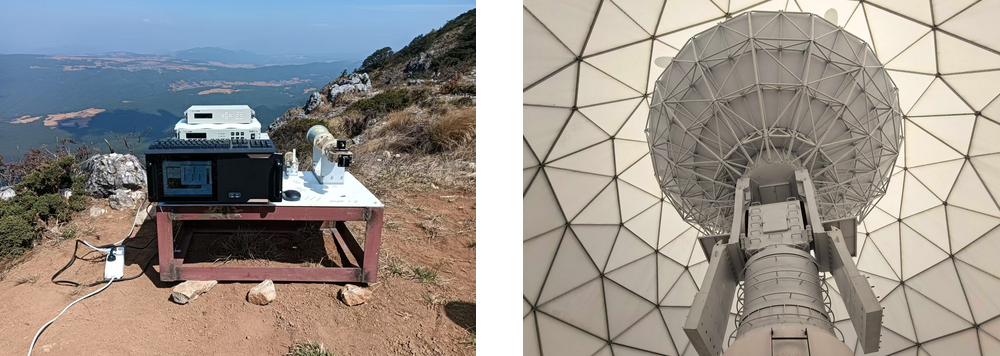 無線對接試驗現場:(a)無線場地(模擬衞星信號發射) (b)麗江站12米數據接收系統