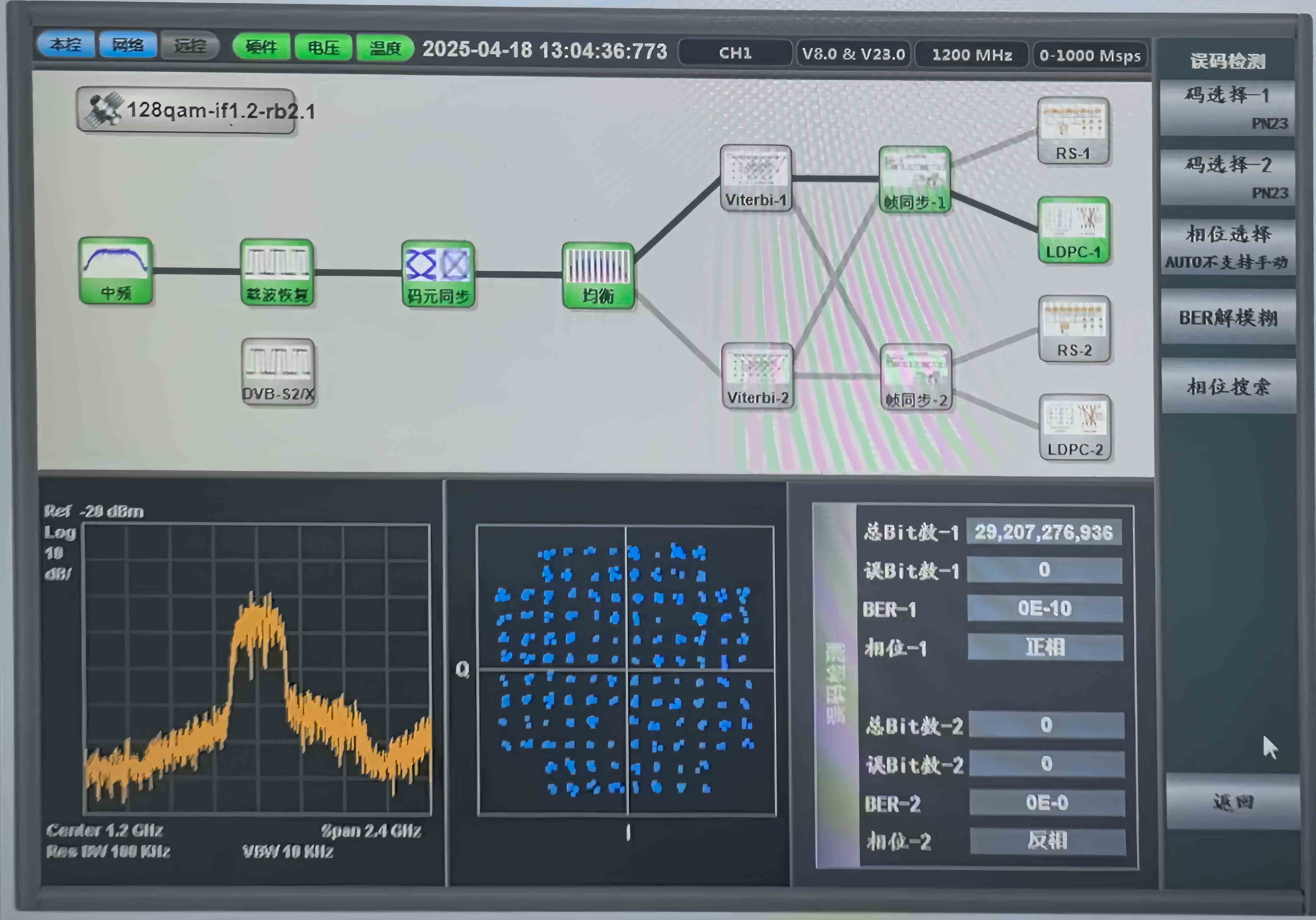 實驗項目負責人、空天院高級工程師張雨濛介紹,三個階段的實驗結果表明,利用地面系統現有信道設備配合新研製的高階體制調制解調器,在128QAM高階體制下,可實現X頻段2100Mbps單通道碼速率通信,星座圖無明顯畸變,誤碼率可歸零,充分驗證了高階體制高碼率數據傳輸的技術可行性。