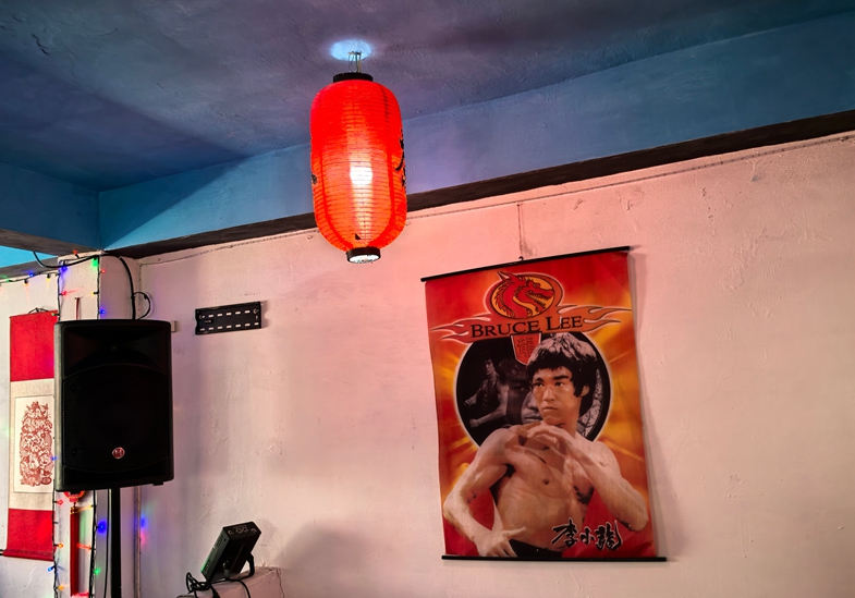 餐館裏隨處可見的是李小龍的海報,這樣的“中國風”裝飾也許在今天國內旅客看來過於老派和刻板印象,但正如李榮富所説,他是小時候看電影喜歡上了李小龍,也喜歡上了李小龍作為文化符號所代表的中國。
