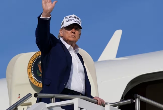 5月25日,特朗普搭乘空軍一號離開新澤西州莫里斯敦前接受了記者採訪。 路透社