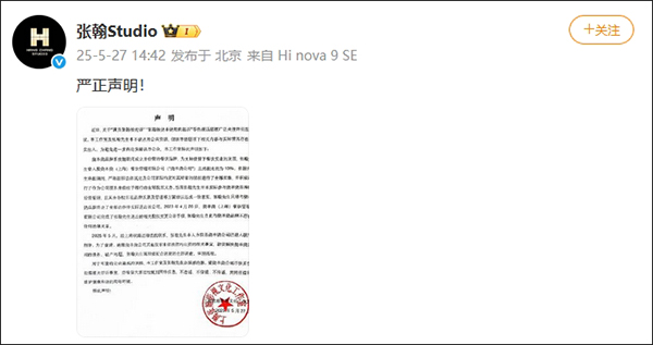 近日,“演員張翰被起訴”等話題衝上熱搜,引發關注。5月27日,張翰工作室官方微博@張翰Studio 發佈嚴正聲明。