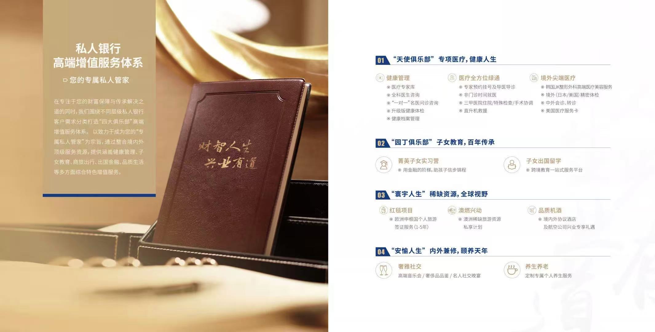 不過,澎湃新聞注意到,公眾號“興業銀行私人銀行”2019年的一篇推文曾提到,興業銀行私人分行圍繞不同層級私人銀行客户需求分類打造“四大俱樂部”高端增值服務體系……提供涵蓋健康管理、子女教育、商旅出行、出國金融、品質生活等多方面綜合特色增值服務。其中,“園丁俱樂部”一欄的標語為“子女教育,百年傳承”,該俱樂部包括菁英子女實習營項目,其註釋為“用金融的階梯,助孩子信步錦程”。公眾號“興業銀行私人銀行”的認證主體為興業銀行股份有限公司。