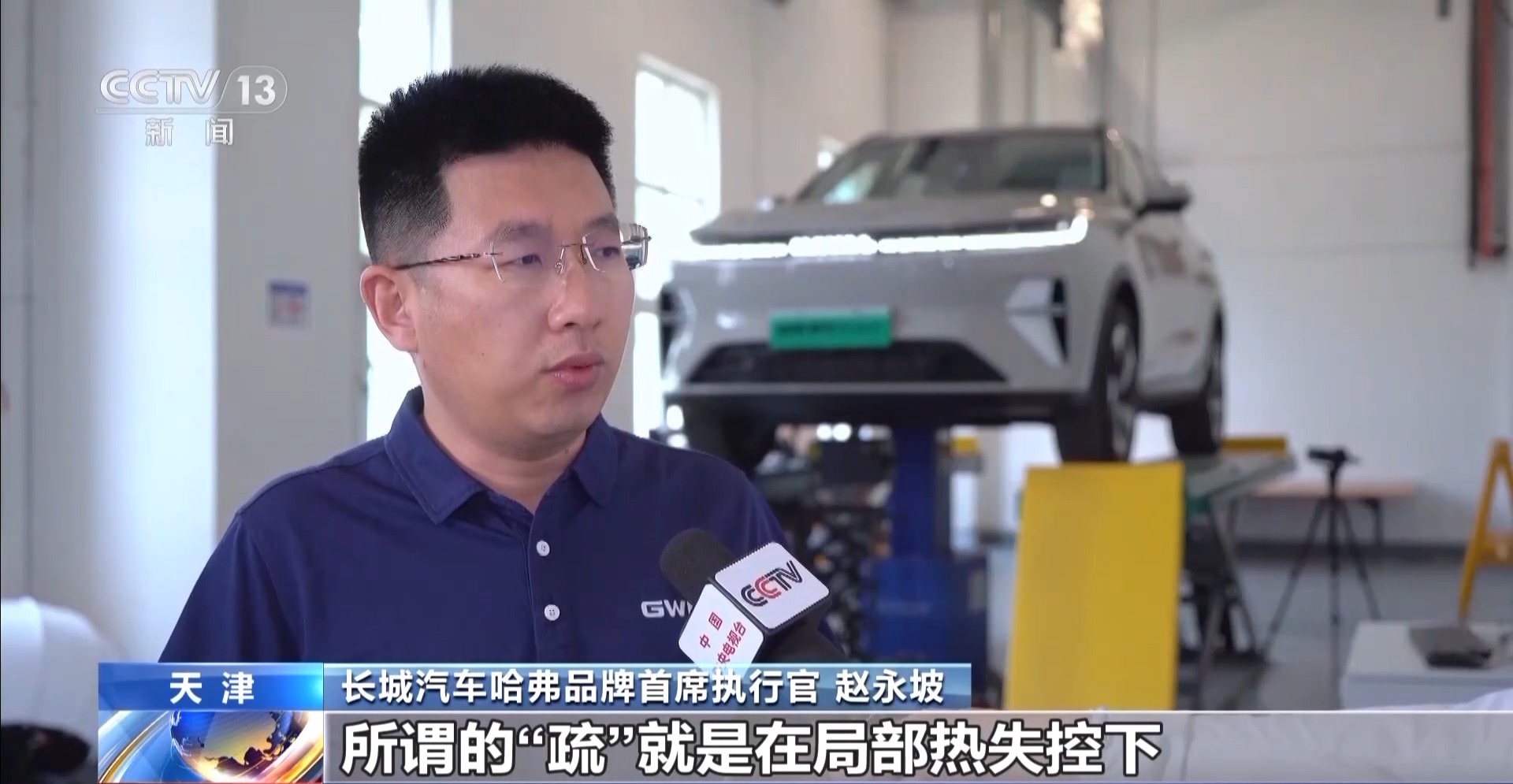 長城汽車哈弗品牌首席執行官 趙永坡:所謂“疏”就是在局部熱失控下,通過因勢利導的方式,在安全的路徑下將熱量散播出去。所謂的“堵”,比方説底部的撞擊,這種要求堅固的位置,我們採用“三明治”的結構,讓它遇到一些強衝擊的時候,能夠不讓我們的電池產生熱失控。