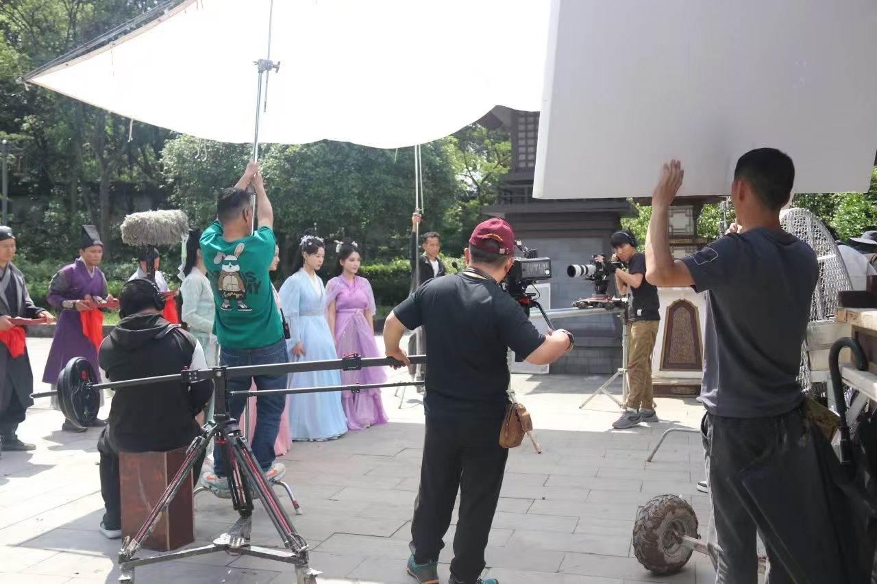 華夏文化園一處微短劇拍攝現場橫店影視城