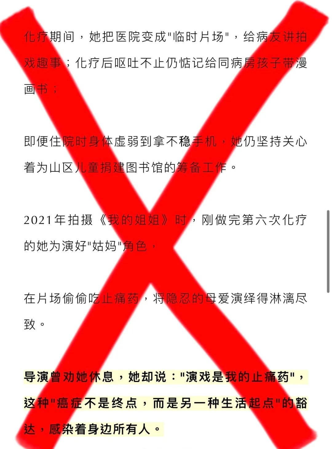 據“藝綻”微信公眾號28日報道,中國國家話劇院知情人士表示,網上廣為流傳的所謂“朱媛媛遺囑”內容純屬捏造,對其病症情況的描述也嚴重失實。什麼“給丈夫的最後一封信”“給女兒的遺囑”“把骨灰灑到拍攝地大海”“捐贈眼角膜”“捐出所有遺產”“捐表演筆記”等內容,皆屬臆想編造。