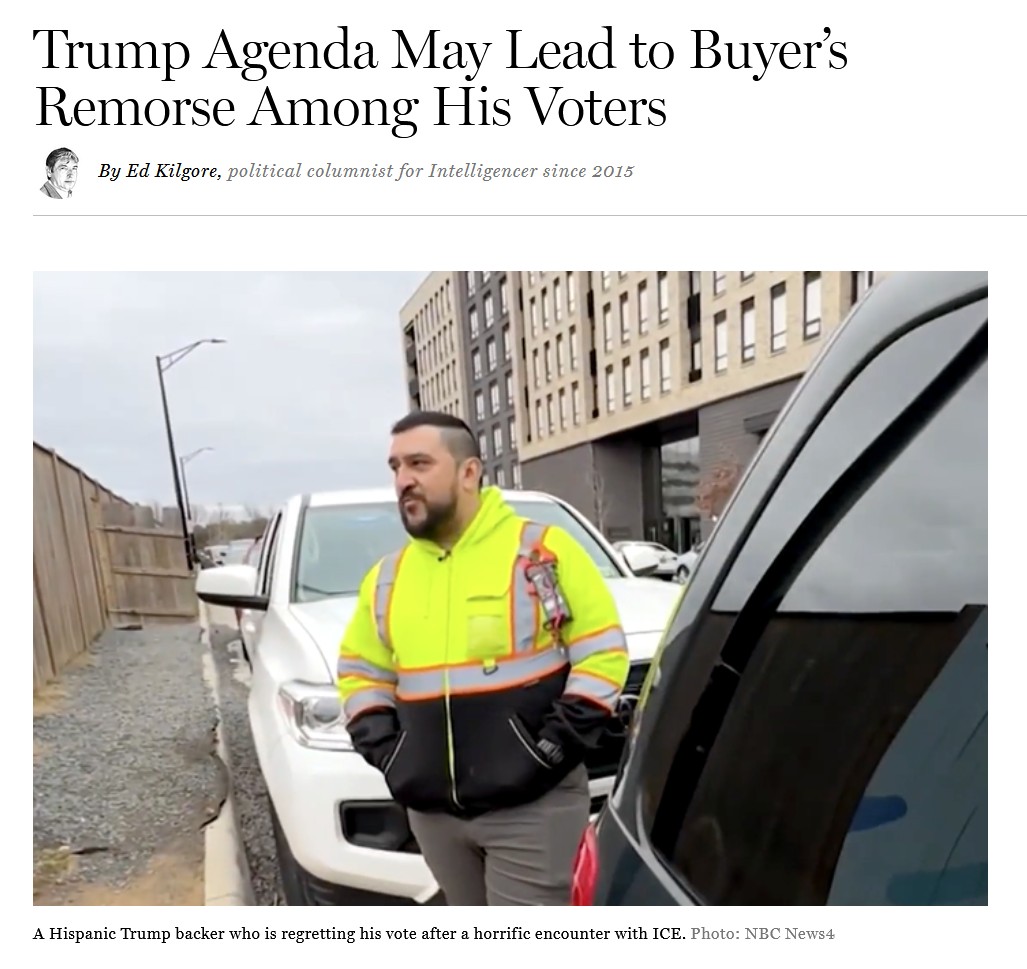 所以很多特朗普的拉美裔移民到現在開始有些後悔了。他們自認為是良民,但是卻發現自己天天被特朗普的移民局當成湊KPI的工具: