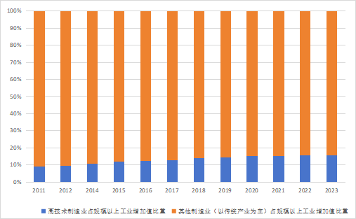 根據浙江省統計局的數據計算,2023年浙江省出口總值達到3.57萬億元,比上年增長3.9%。其中,全省機電產品出口1.63萬億元,勞動密集型產品出口1.11萬億元,高新技術產品出口3197.6億元,分別佔全省出口總值的45.6%,31.2%,8.97%。機電產品和勞動密集型產品都屬於傳統工業,加起來佔全省出口的比重超過76%。