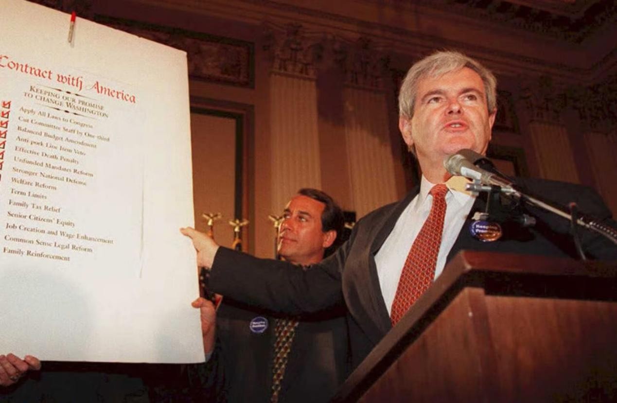 金裏奇的“Contract With America”何以成功?因為他研究了美國人民最關心的議題,從家庭到財政到就業到犯罪……當年美國人所關心的那些事情,和現在美國人所關心的這些事情,也沒什麼區別。當然,換句話説,當年的那些問題,直到現在也沒有解決,當年金裏奇所承諾的與美國人民簽訂的契約,就和任何政客的承諾一樣,選舉過後就是廢紙。