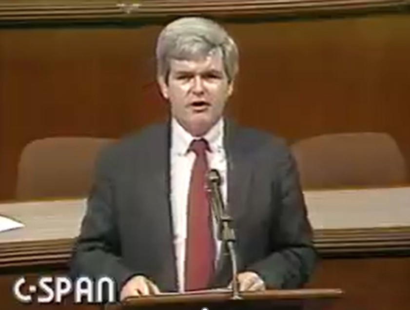 在1978年贏得國會席位之後,金裏奇把他的鬥爭理念帶到了國會,也聚集起了一批願意追隨他的年輕人。但是在很長一段時間裏,金裏奇仍然是黨內的少數派,大部分共和黨大佬仍然覺得沒必要那麼極端,大家低頭不見抬頭見,沒必要跟民主黨翻臉。
