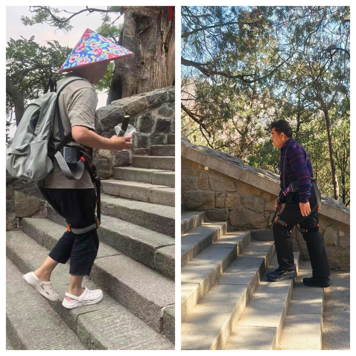 王厚哲介紹,泰山景區這款 “人機協同”穿戴式外骨骼智能裝備,採用的是輕量化材料製造,重1.8公斤。在設計上充分考慮人體匹配度,穿着比較舒適自然,其模塊化、便攜性設計也讓攜帶和使用更加便捷,爬山時能有效降低30%以上的體能消耗,為使用者的雙腿增添高效“外掛”。“目前,泰山景區已投放500台登山穿戴式外骨骼智能輔助設備,並在泰山的紅門、中天門、南天門設置了服務點位。”