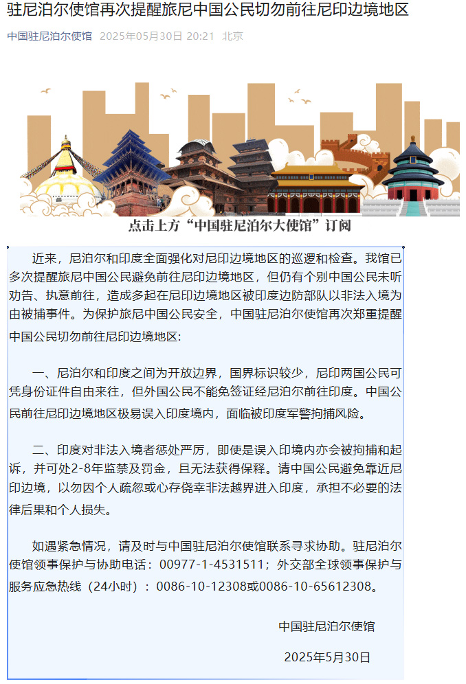已有多起中國公民被印度部隊拘捕事件!我駐尼使館鄭重提醒:尼印邊境,切勿前往