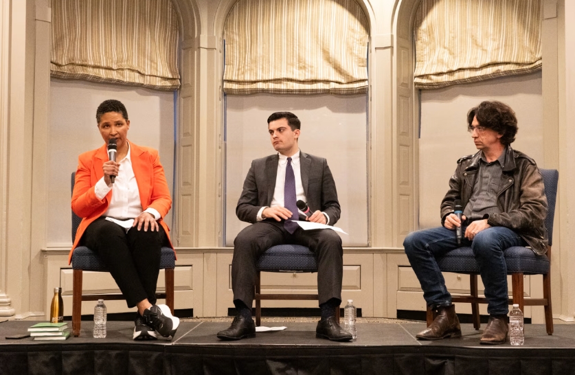 5月初,德馬特奧曾在哈佛大學組織了一場與亞文的辯論會。讓很多人意外的是,哈佛大學教授、民主和政治理論專家丹妮爾·艾倫(Danielle Allen)應邀參加了這場辯論。