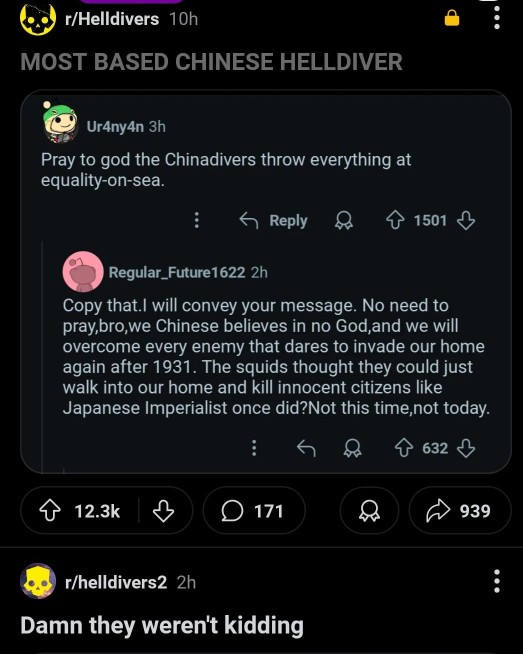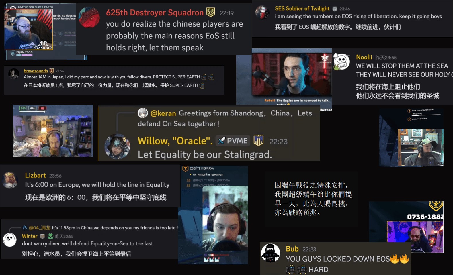 隨着貼吧、reddit、微博、X上的號召,中美玩家開始背靠背的抵抗,互相在對方休息和工作的時候,為對方的城市抗擊侵略者。一場跨時區、“小紅書大對賬”般的全球協作悄然成型,以至於很多美國玩家都在感嘆:“我從來沒想過我會和一箇中國人/共產主義者並肩死戰。”