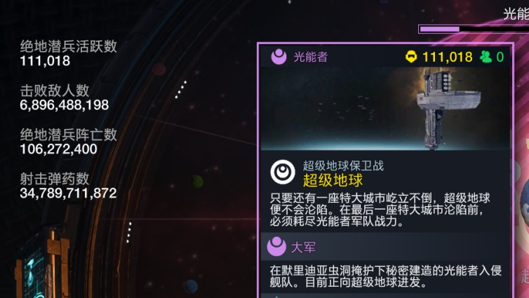 自然而然,一次重大的系統與劇情更新,將成為遊戲很好的強心劑,於是Arrowhead箭頭製作組和劇情的總負責人喬爾Joel,選擇開啓超級地球保衞戰,曾被地球打的差點亡族滅種的光能族帶着積攢了百年的四千萬艦隊,對着人類的母星:超級地球而來。