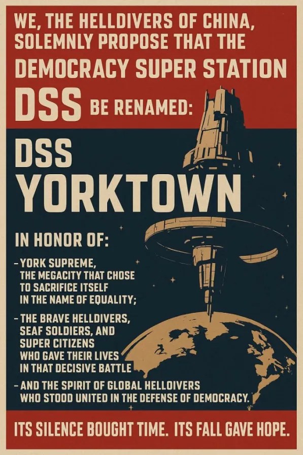 紐約的犧牲、同樣72小時的傳奇搶修,同樣的最後時刻趕到戰場全軍士氣大振,讓中國玩家提議將空間站改名約克敦號