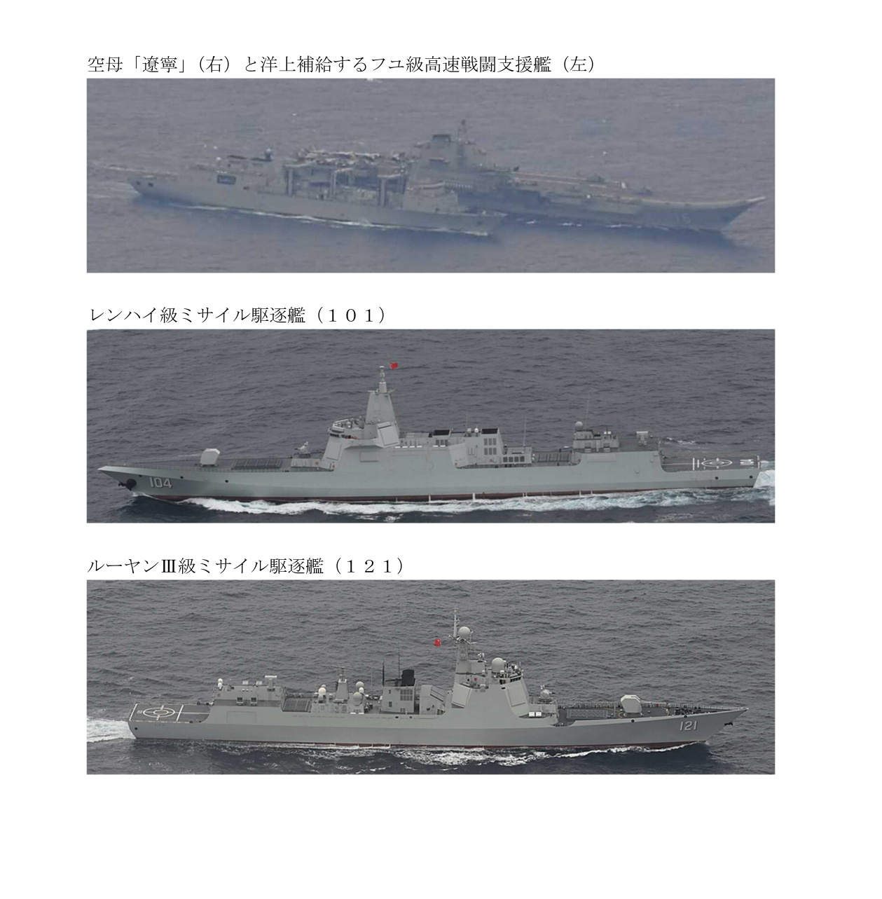 日本海自觀測到戰鬥羣成員包括055型導彈驅逐艦南昌艦(舷號101),052D型導彈驅逐艦齊齊哈爾艦(舷號121)、唐山艦(舷號122),以及901型綜合補給艦呼倫湖艦。日本海上自衞隊隸屬於海軍吳港基地的第12護衞羣“海霧”號驅逐艦(DD-158)進行警戒監視和情報收集。另外,針對艦載戰鬥機,航空自衞隊的戰鬥機緊急起飛作為回應。
