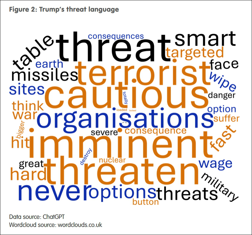 根據特朗普過往使用過的威脅詞彙所製作的詞雲 ECFR製圖