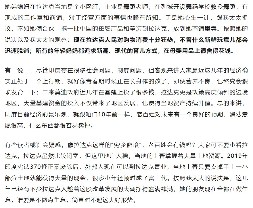 娶了印度拉達克妻子的隨水就講述了拉達克地區外邦人來置業,引發本地商品經濟大潮的故事。這類故事,也是印度各地經濟現象的一部分。這也很容易理解,消費意識覺醒,又有了經濟條件,就會爆發消費狂熱。