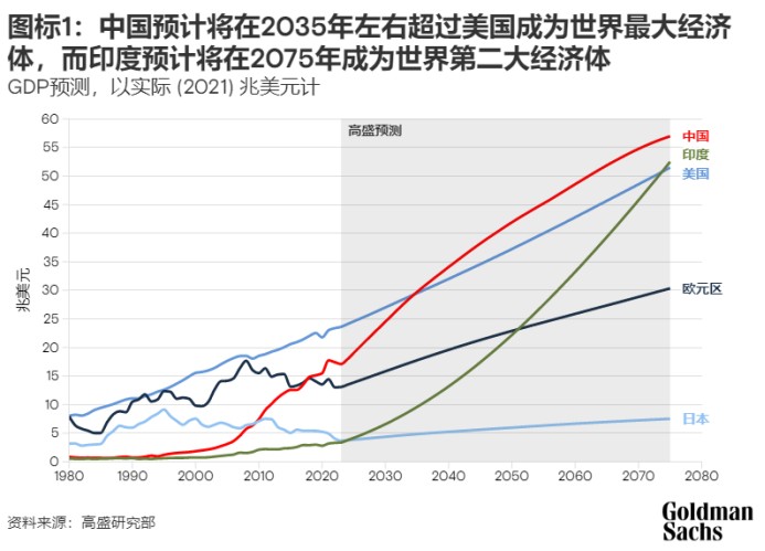 在國際上,長期看就是中美印三國經濟規模大幅領先後面的國家,所以高盛敢於發佈“2075年印度經濟總量超過美國”之類的誇張預期。